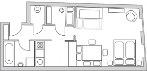 Spacious, about 70m², comfortable apartment located on the ground floor. Perfectly integrated in historical walls, therefore smaller, but complete and with attention to detail, equipped bathroom / WC.
